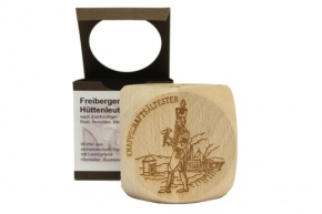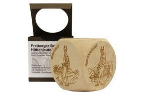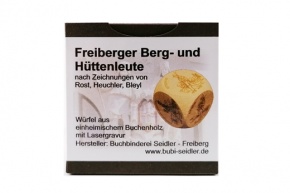 Holzwürfel aus FSC zertifiziertem Holz mit 6 Freiberger Bergleuten nach