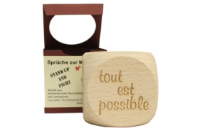 Dekorativer Würfel aus Buchenholz mit Gravur Motivation