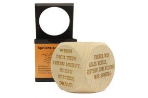 Holzwürfel aus FSC zertifiziertem Holz mit 6 Sprüchen zur Motivation