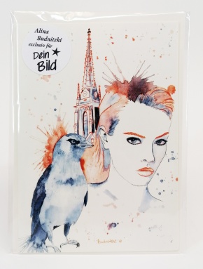 Gedruckt auf leicht getöntem Conqueror Karton mit gleichfarbigem, selbstklebendem Umschlag, einzeln in Folie verpackt.