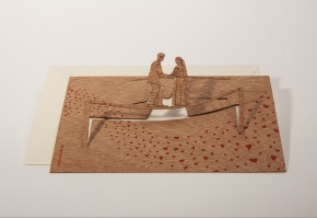 Karte aus echtem Zedernholz-Laminat mit aufrichtbarem Motiv
