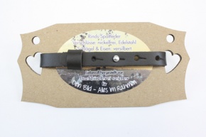 Lederarmband aus Rinds-Spaltleder, ca. 1 cm breit und 25 cm lang, mit vier Befestigungslöchern und einer Knopfschraube aus Edelstahl, Schriftzug Freiberg, Hammer & Schlägel sowie Geo-Koordinaten lasergraviert.