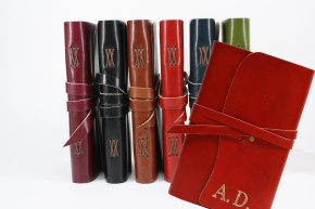 Rücken sichtbare Kreuzstiche, mit Lederband zu verschließen