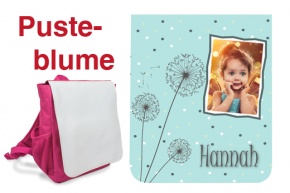 Rucksack, Trinkflasche und Frühstücksdose werden in gleichem Design bedruckt (jeweils auf das Produkt angepasst). Der Druck erfolgt mittels Sublimationsdruck.