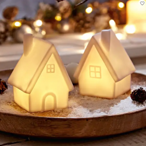 Kleines, gemütliches Haus mit warmweißer LED Beleuchtung zum Hinstellen