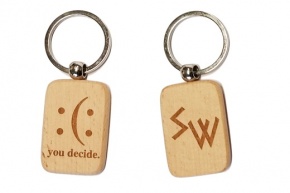 Anhänger aus Buchenholz, ca 45 x 30 mm, mit Gravur deiner Initiale auf der Vorderseite und Grafik "you decide." auf der Rückseite.