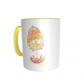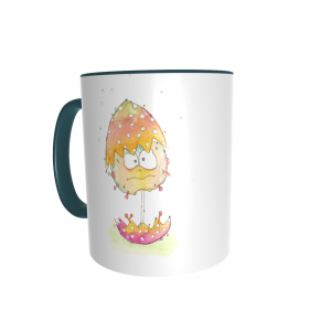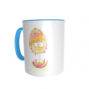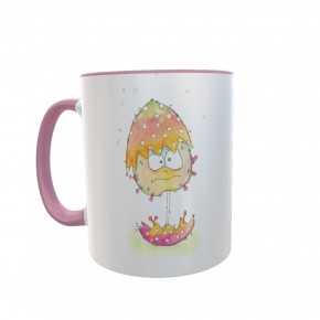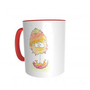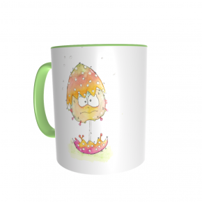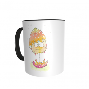 Diese Tasse ist nur für Dich: Vorn ist ein schlüpfender PaintBug aufgedruckt, auf der anderen Seite dein Name. Die Tassen sind weiß mit farbigem Griff und Rand, die Schrift deines Namens hat die selbe Farbe wie der Griff.
