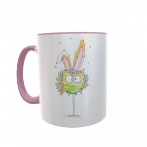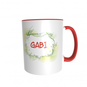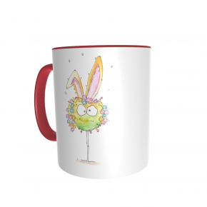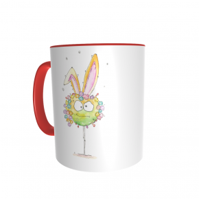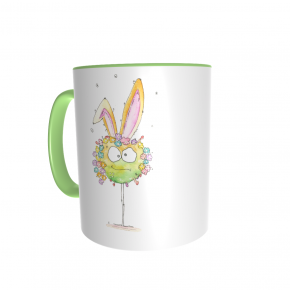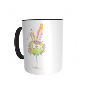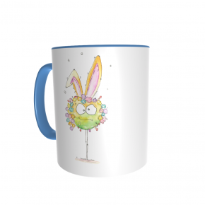 Diese Tasse ist nur für Dich: Vorn ist Hase aufgedruckt, auf der anderen Seite dein Name. Die Tassen sind weiß mit farbigem Griff und Rand, die Schrift deines Namens hat die selbe Farbe wie der Griff.