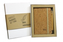 Notizbücher in A5- und A6- Format mit einem Bucheinband aus natürlichem Kork inklusive einem Kugelschreiber aus Bambus - beides mit Namen lasergraviert
